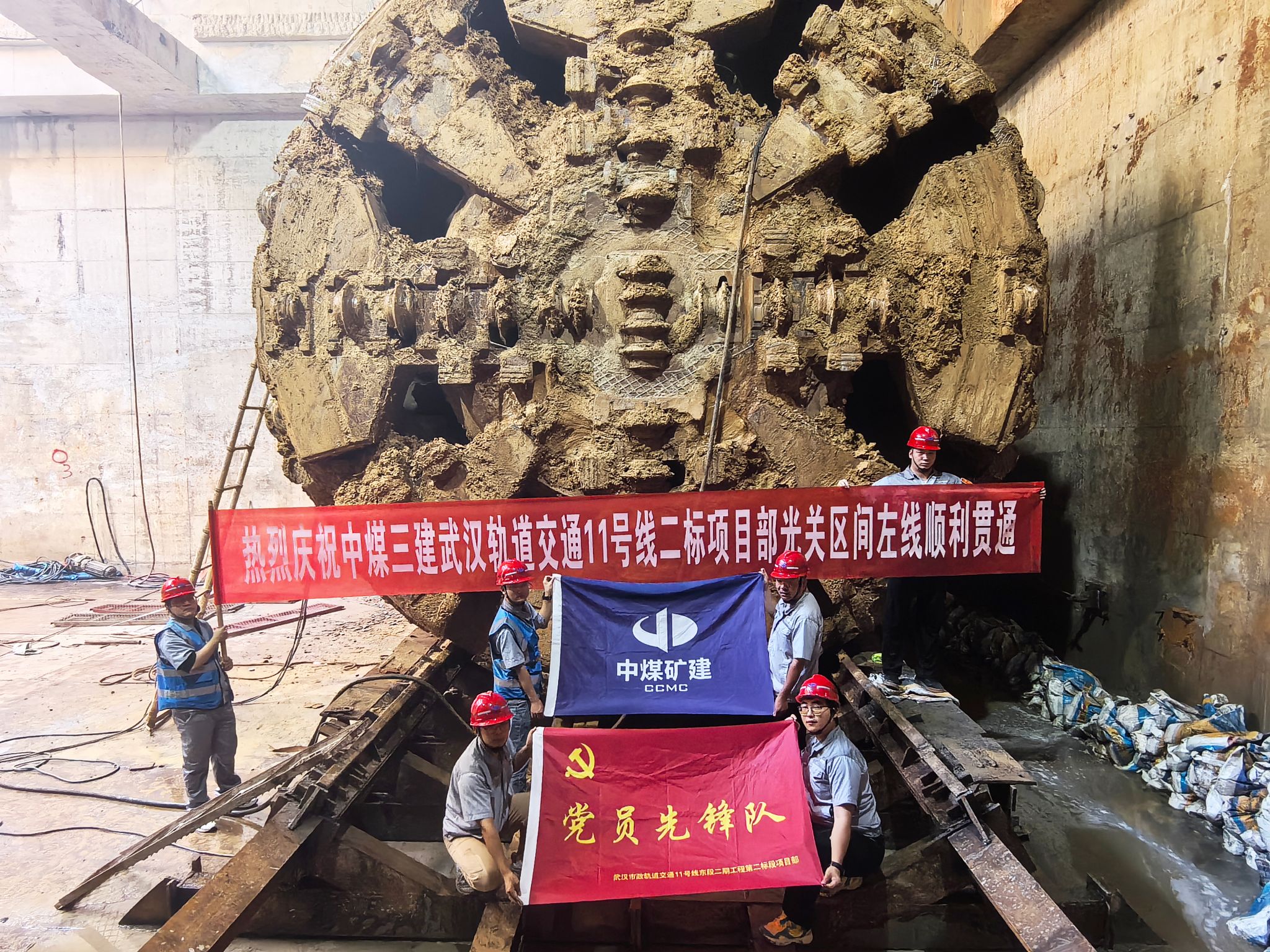 据悉,光谷广场至关山大道区间左线全长约1625米,区间盾构穿越粘土夹碎石、红粘土、红粘土夹碎石等地层,沿线穿越了大量建筑物、管线、地下电力隧道以及地面T1有轨电车等设施,盾构施工难度较大,安全风险较高。项目部在施工过程中持续优化施工方案,不断细化工程参数,调整最佳掘进姿态,克服了地质结构复杂、工期紧等难题,确保了盾构机掘进施工安全。此外,项目党员先锋队冲锋在前,切实发挥了先锋模范作用,为项目建设注入强劲动力,顺利完成贯通任务。