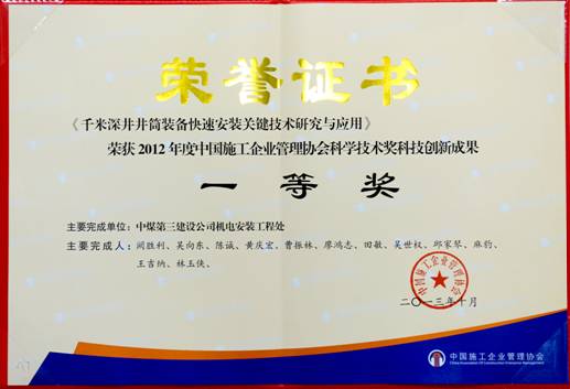 在井筒装备安装工程尤其是超深井筒装备安装上拥有行业最先进技术,其中一次成井安装工艺技术被评为中国施工企业科技成果一等奖。先后制作安装井筒深度600米以上的提升系...