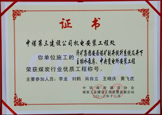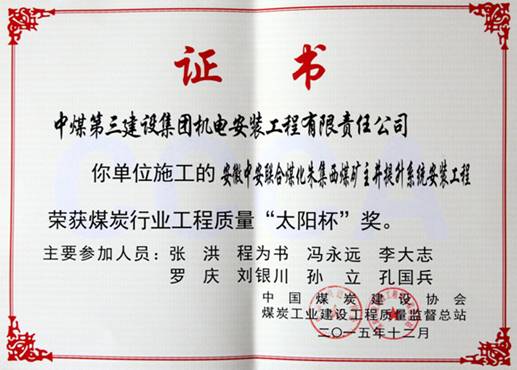 中煤第三建设集团机电安装工程有限责任公司 雄厚的技术实力,铸就了中煤第三建设集团机电安装工程有限责任公司良好的品牌形象,赢得了社会各界的广泛认可。